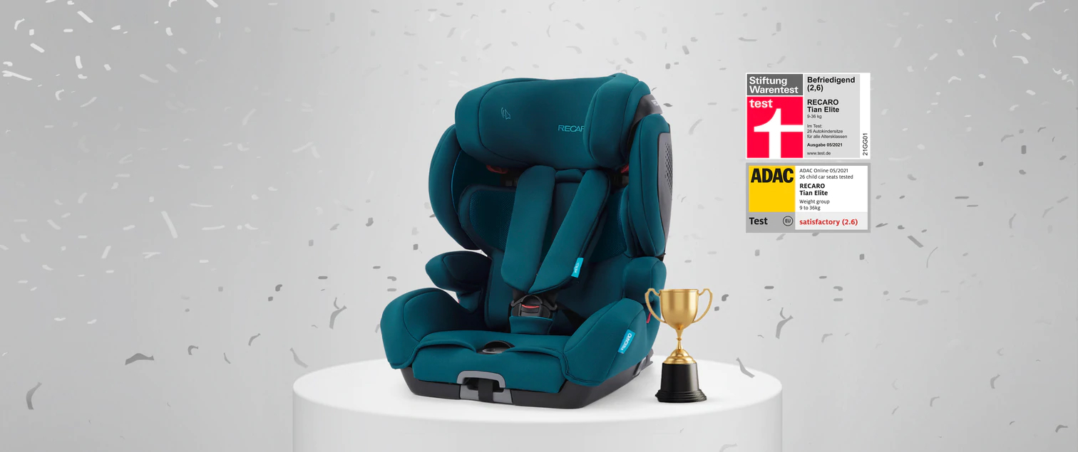 Grandate (Italy) / Bayreuth (Germany), 27.05.2021 - In the current ADAC test and Stiftung Warentest, the most important European child seat tests, our RECARO child seat Tian Elite was tested and awarded the overall rating of 2.6. This made it the best in its rating class. In terms of safety, the seat impresses with its stable position in the vehicle as well as its good crash performances. In addition to the excellent ergonomics and the “growing with the child”, the Tian Elite is also positively highlighted for its toxic-free materials used (1.0).