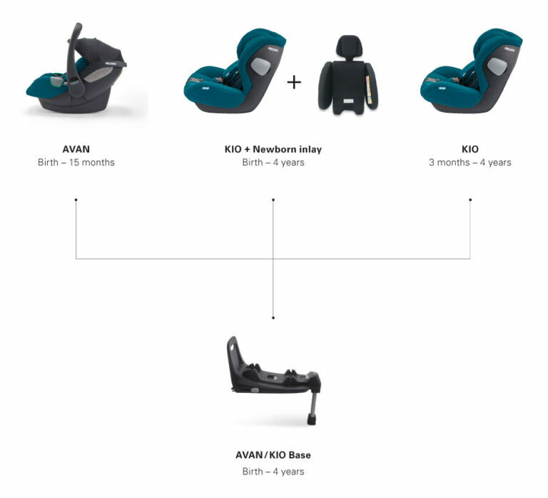 From birth to a height of 83 cm (about 15 months), the infant carrier Avan can only be used rear-facing, while you can use the reboarder Kio for your child from a height of 60 cm (about 3 months) or, with the additionally available newborn inlay, right from birth. We recommend using the reboarder rear-facing for as long as possible – if possible up to a height of 105 cm or about 4 years of age. Once your little one is 16 months old, you can also use the reboarder forward facing. For safe journeys – both long and short – as your child grows.