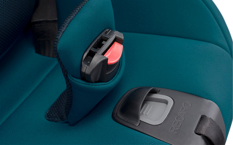 The harness buckle ensures simple safe fastening: when the child is out of the reboarder the harness buckle tilts forward and stays in this position. So the child does not sit on the buckle when placed in the reboarder and parents are able to fix the harness system securely, comfortably, and quickly.