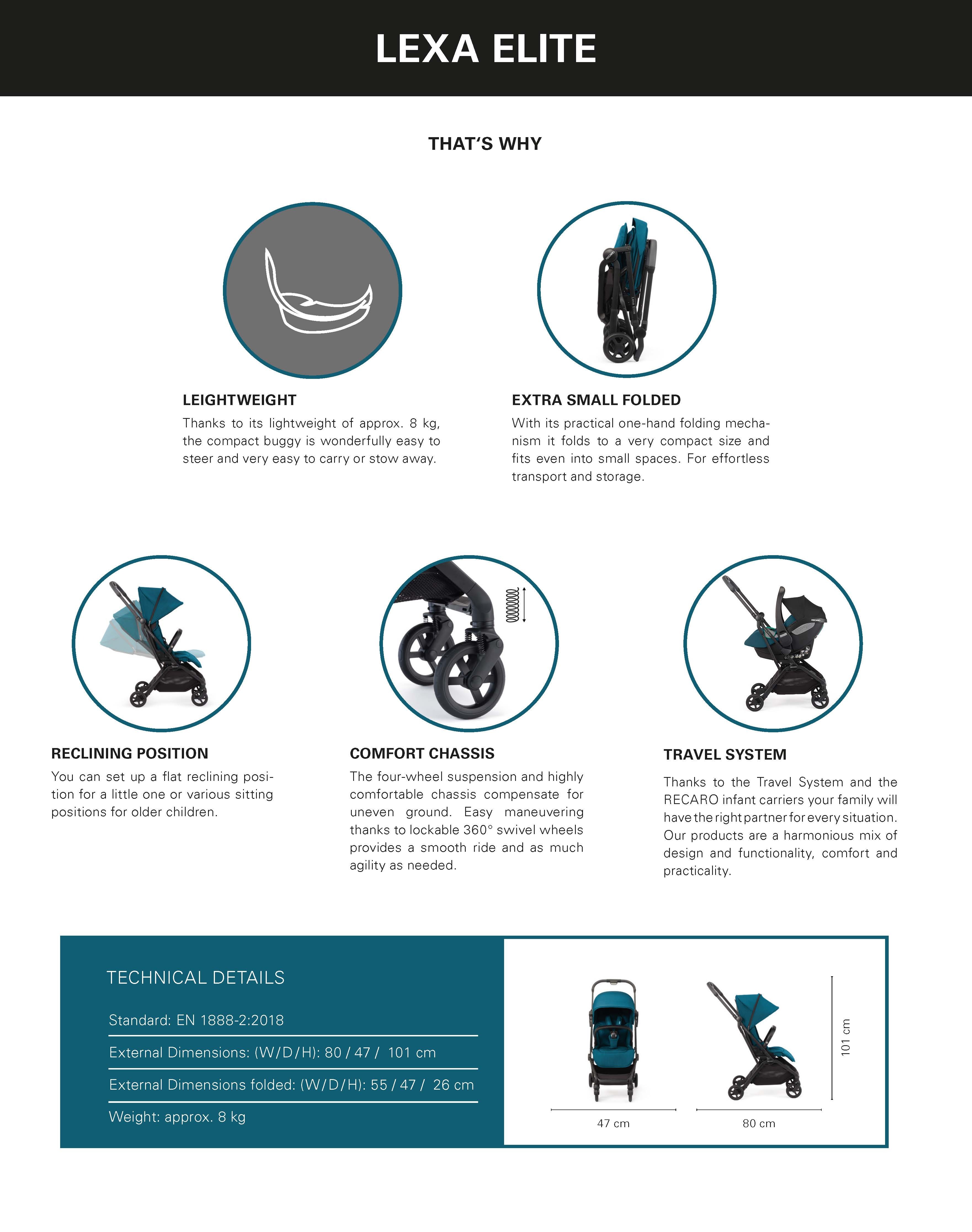 LEXA Ekite Stroller: Max.22kg/ 4 years